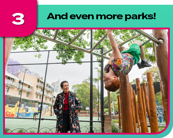 Wimbo Park won two prestigious landscaping awards and we opened: James Watkinson Reserve in Pyrmont; Wattle Lane Park Playground in Ultimo; Woolloomooloo Playground; Macquarie Place Park; McConville Reserve in Beaconsfield; and Arthur Reserve in Surry Hills; while making great progress on some major new parks like Gunyama Park Stage 2 in Green Square and a series of upgrades in Redfern.