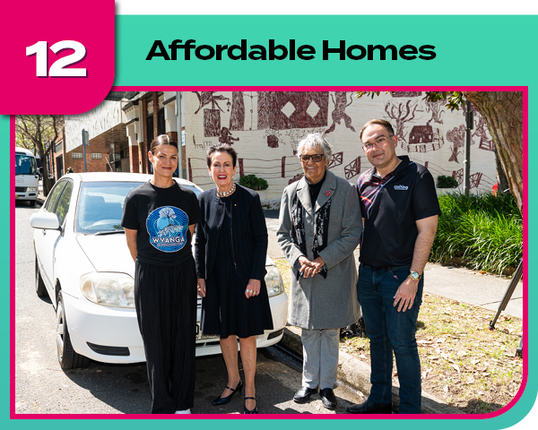 Our Affordable Housing policies have resulted in 3,466 affordable and diverse homes – either built, in the pipeline, or expected – more than any council in Australia. This year we entered a partnership with Uniting and Wyanga Aboriginal Aged Care to turn a council car park in Redfern into a not-for-profit, 50-person aged care home for local Elders, and celebrated the opening of 74 social and affordable apartments in Waterloo, which our development levies helped to fund.