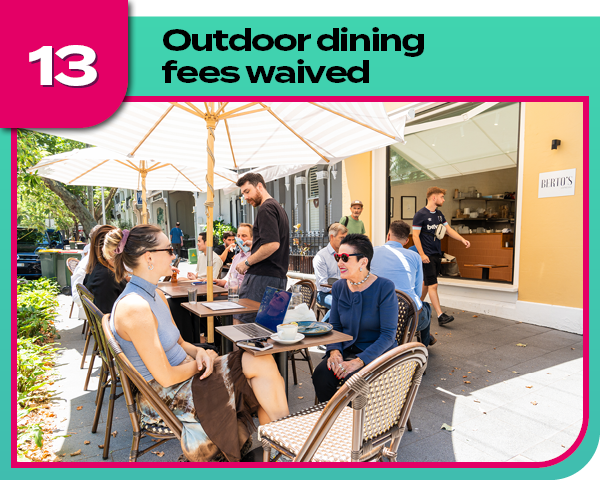 We permanently waived outdoor dining fees across the City of Sydney local area and began the process of making our temporary on-street dining opportunities permanent! It’s wonderful to see people out on the streets, connecting with each other and enjoying their neighbourhood while supporting local businesses and we’re proud to say it’s here to stay.